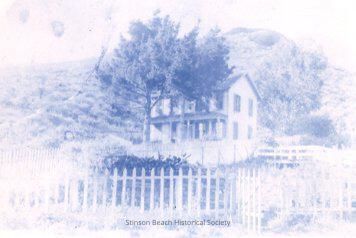 The photograph shows a 2 story white house with a large tree in front on the left and a white picket fence in the foreground.Collection