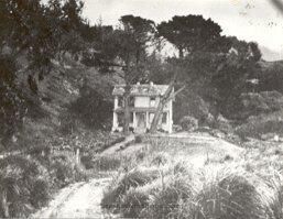 The Easkoot house is set back from the road and up a small hill. There are 2 trees in front of the house, and a garden below them. A house can be seen in the background, farther up the hill.Acquisition