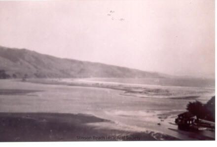 A blurry photograph of Bolinas Lagoon, looking south from the head of the lagoon.