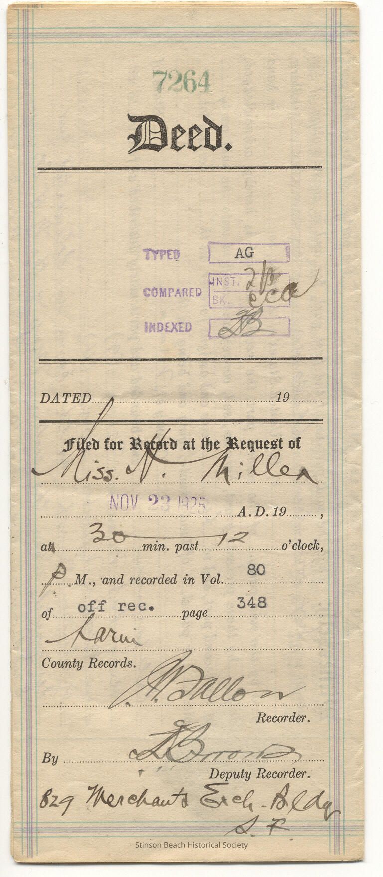 A deed conveying therein described real estate from Elsie Furneaux (formerly Elsie Schenk) and Mary Johnson to Hattie Miller. Property: Lot no. 9, Block no. 4Collection
