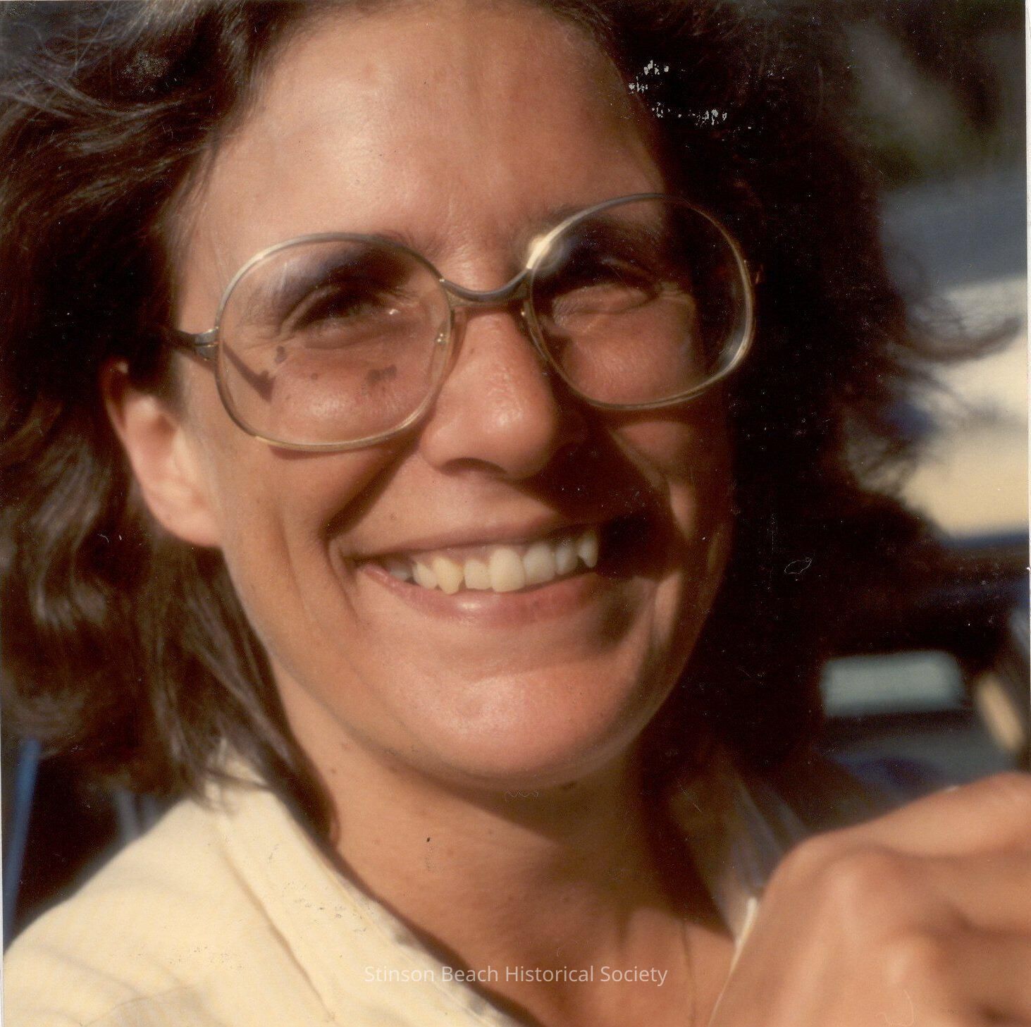 A color photograph of the face of Patty Wilkerson. She owned and operated the flower shop Seaflower with Peggy Thordis Larson (2002-155-01) until it was sold to Jeff as the Meristem flower shop. She lived on the property she owned on Calle del Resaca. (ta)Collection