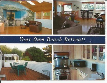 There are four views of a house interior (two living areas, a deck and a kitchen) on the front of this postcard. Details and the price are written on the back with the broker's name and information below. The company logo (Frank Howard Allen) is also on the back..Collection