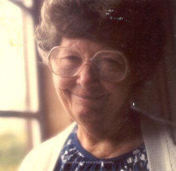 An original color photograph face of Secord, Mary. She and her husband lived across street from the Community Center now converted into a large Spanish style home. Her husband built the home and worked hard to start the garden filled with natural rocks. (ta)Collection