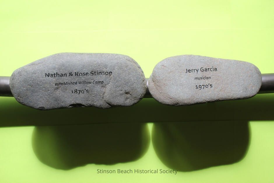 This is a mounted photo of 2 engraved rocks to show the methods and looks of proposed Stisnosn Beach Memorial project.Collection