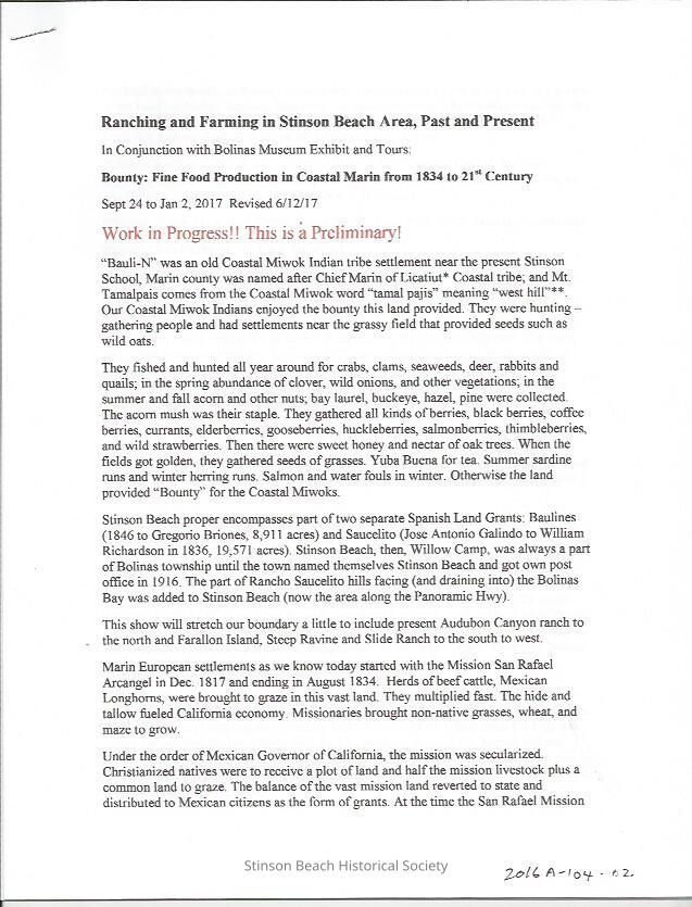 Bounty: Fine Food Production in Coastal Marin from 1834 to 21st Century; Stinson Beach Area Farms and RanchesEntry/Object ID