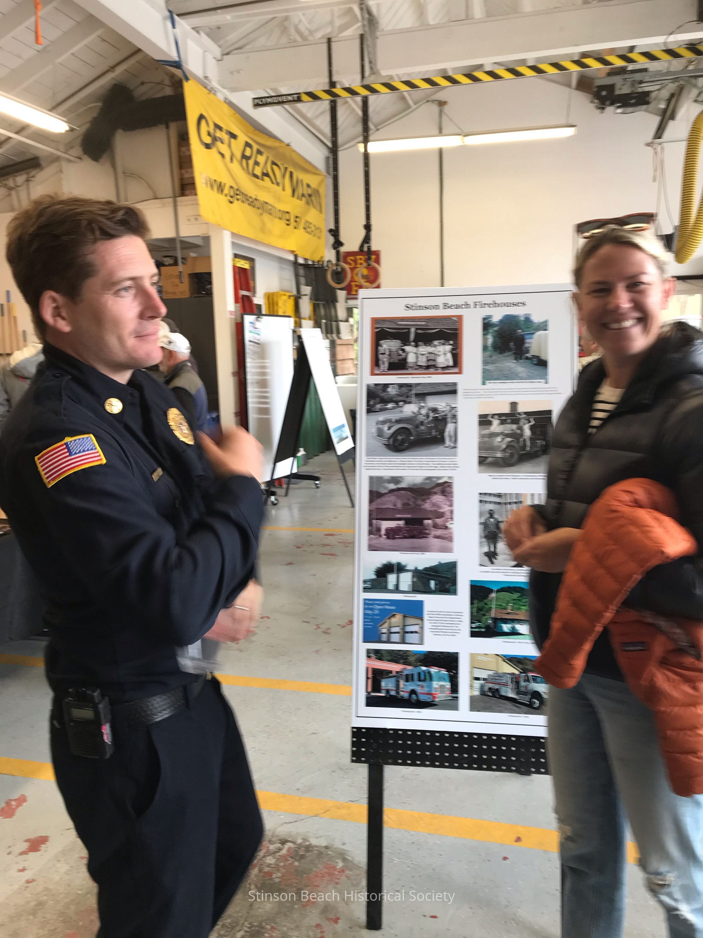 Here Jesse Peri, Fire Chief, and Barbara Mitchell, stand in front of one of the exhibits.