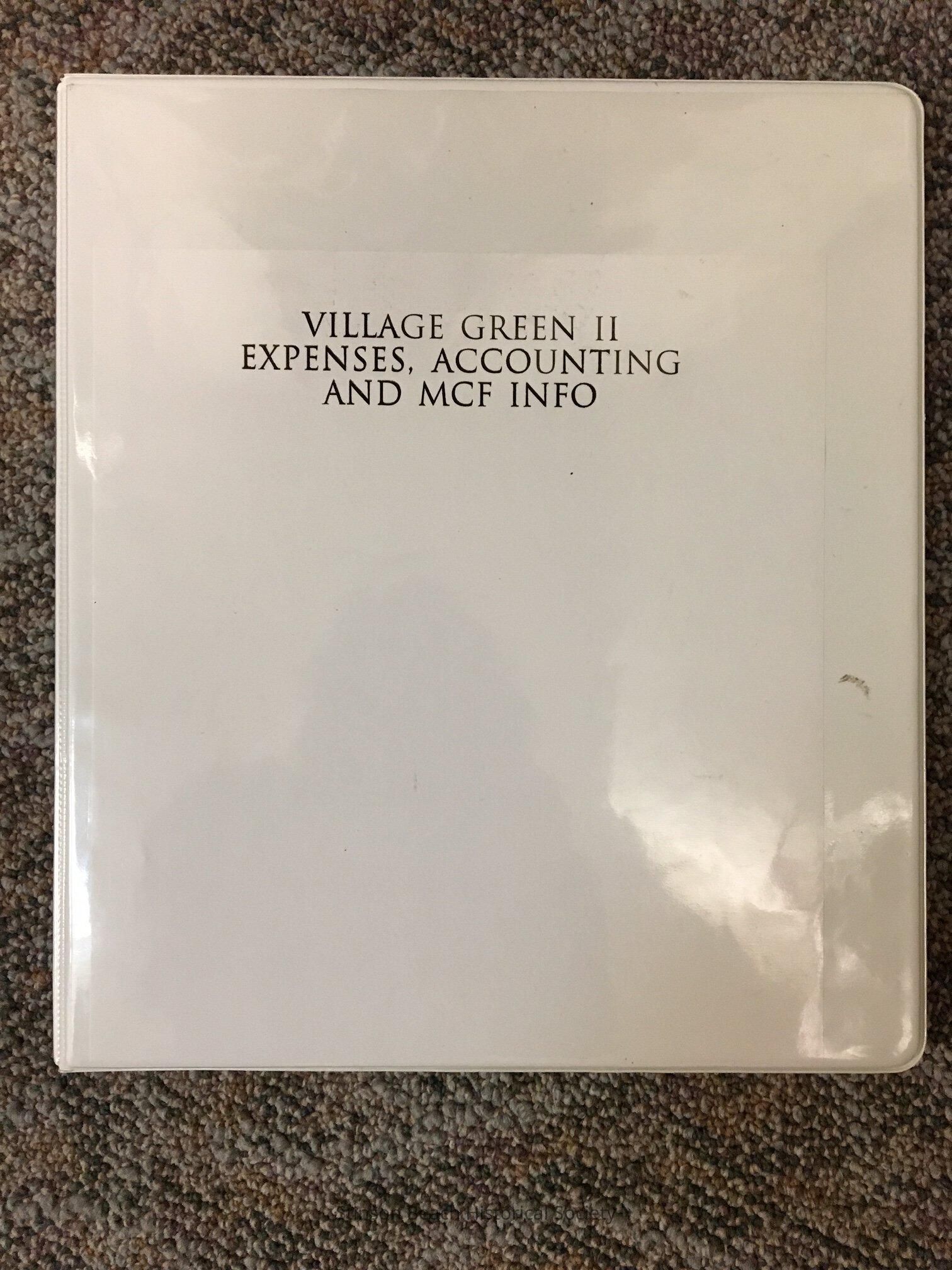 This is a loose leaf collection of info on Village Green II finance starting August of 2001 ending on March of 2003. Chuck Hobson is leading the fund raising effort. Stinson Beach Park Fund of the Marin Community Foundation (MCF) became the overseer of the collection and disperser of the fund.Collection
