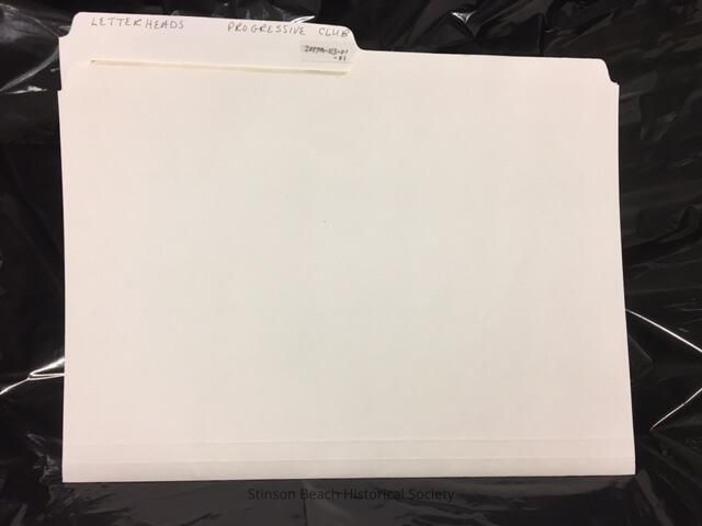 This folder includes 2 letterheads use by the Stinson Beach Progressive Club in 1960s.Collection