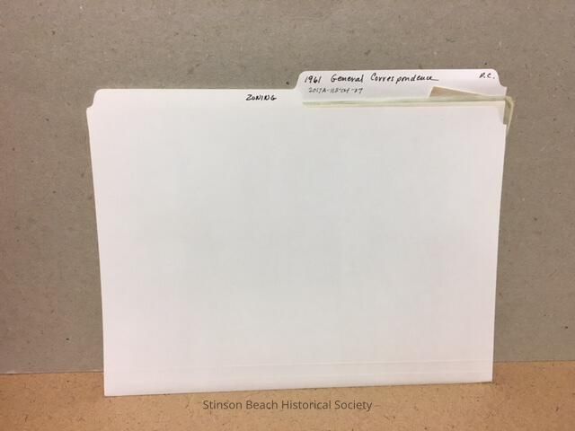 This Progressive Club file contains 1961 correspondences regarding: Bolinas-Stinson Beach Master Plan, Zoning, Fire insurance quotes for Community Center complex, etc.Collection