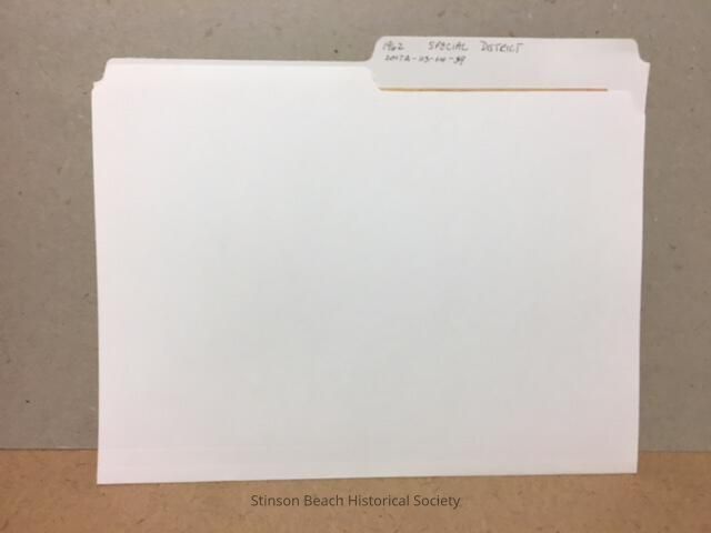 This 1962 folder of the Progressive Club contains one letter written by the Secretary of the club, Harriet M. Green to the named County Counsel regarding the special district being considered for Stinson Beach Sanitary District to be called "Proposed County Water District" and the boundary should be from Steep Ravine down to Ocean.Collection