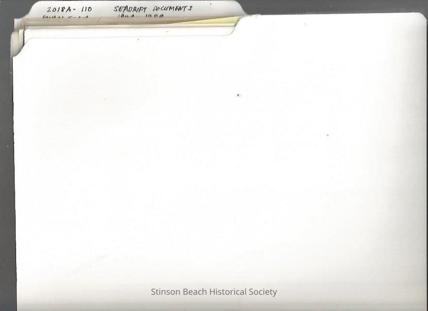 The folder includes 10 documents related to Seadrift Development collected by Al Engel of Oceanic Realter Starting 1949 ending 1989: