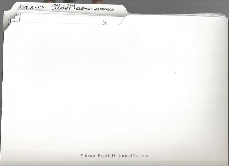 This folder contains materials collected by Tamae Agnoli in the course of writing the Seadrift Timeline (2018A-112-03). It has many Newspaper clippings, downloads from the web and other advertizing materials by real estate agents Years ranging 1905 to 2018.Collection