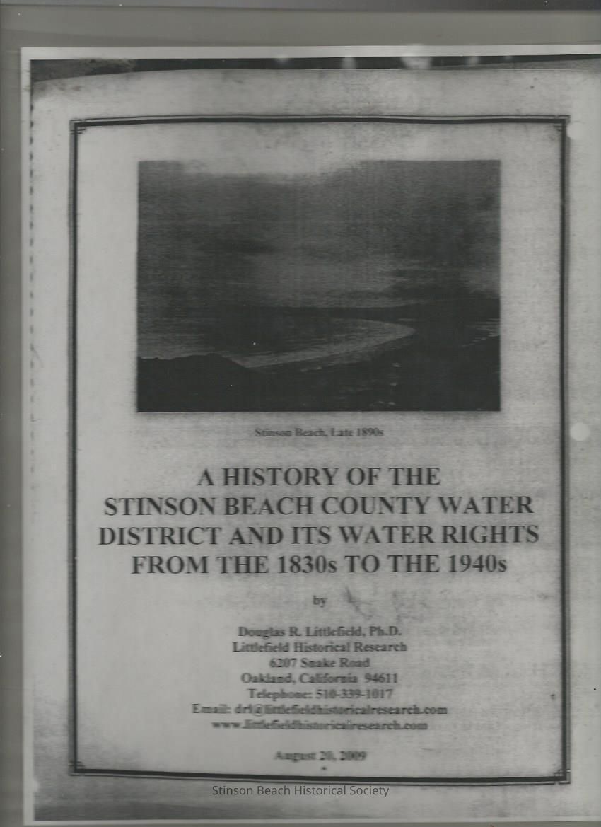History of Stinson Beach County Water District and Its Water Rights from the 1830s to the 1940sEntry/Object ID