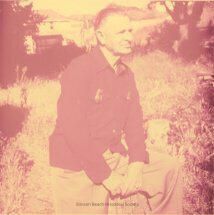 This color photographic print has faded so that only red and yellow are left. It shows a man (Will Airey) half seated on something with his left leg up in seated position and his right left down in standing position. He is wearing a dark shirt and light pants. He is 3/4 towards the camera and facing to the right. He has a receding hairline and graying sideburns. The background is hard to make out but there is a house behind his right shoulder at the left of the picture.Collection