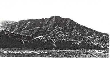 B&W xerox copy (no print) of a postcard showing Mt. Tamalpais hillside. It is difficult to know where the shot was taken. There seems to be open field in the foreground and trees at the base of the mountain. In the bottom lefthand corner is written in white "Mt. Tamalpais, Marin County, Calif."Collection