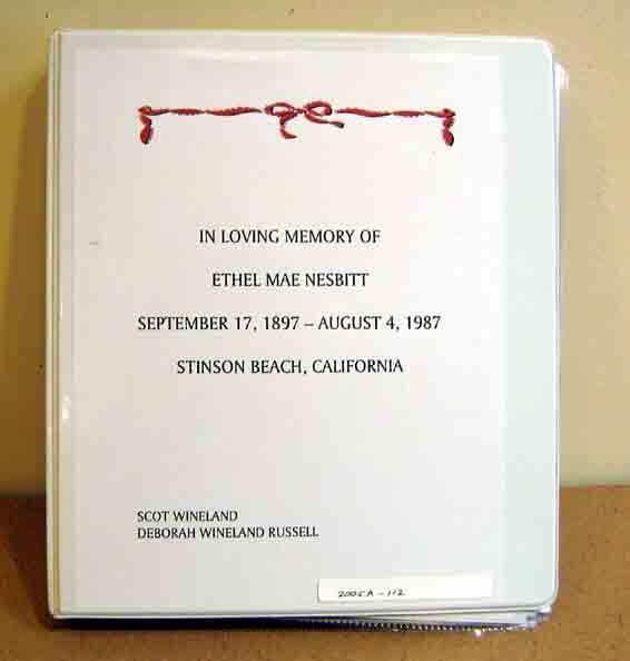 History of Ethel Mae Nesbit, school teacher at Stinson Beach School. Includes 24 photos, various legal documents on sale of Dipsea Lodge, letters from school parents to Miss. Nesbitt, letters from he husbands Jack Lauf and Robinson W. Upton, and ki