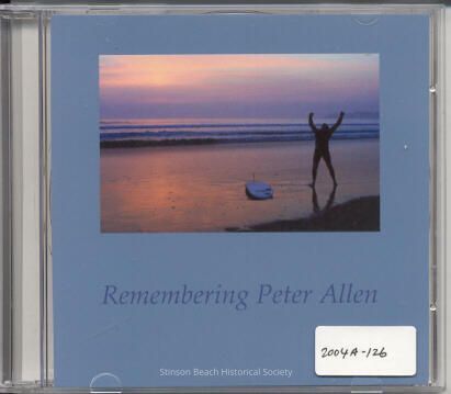 Peter Allen, who was a major artist and colorful Stinson Beach character, is immortalized in this DVD. Chuck Olin chronciles his life in stages - from his creation of a wooden seal sculpture to scenes from his surfer's funeral at the beach. Peter committed suicide in 2002.Collection