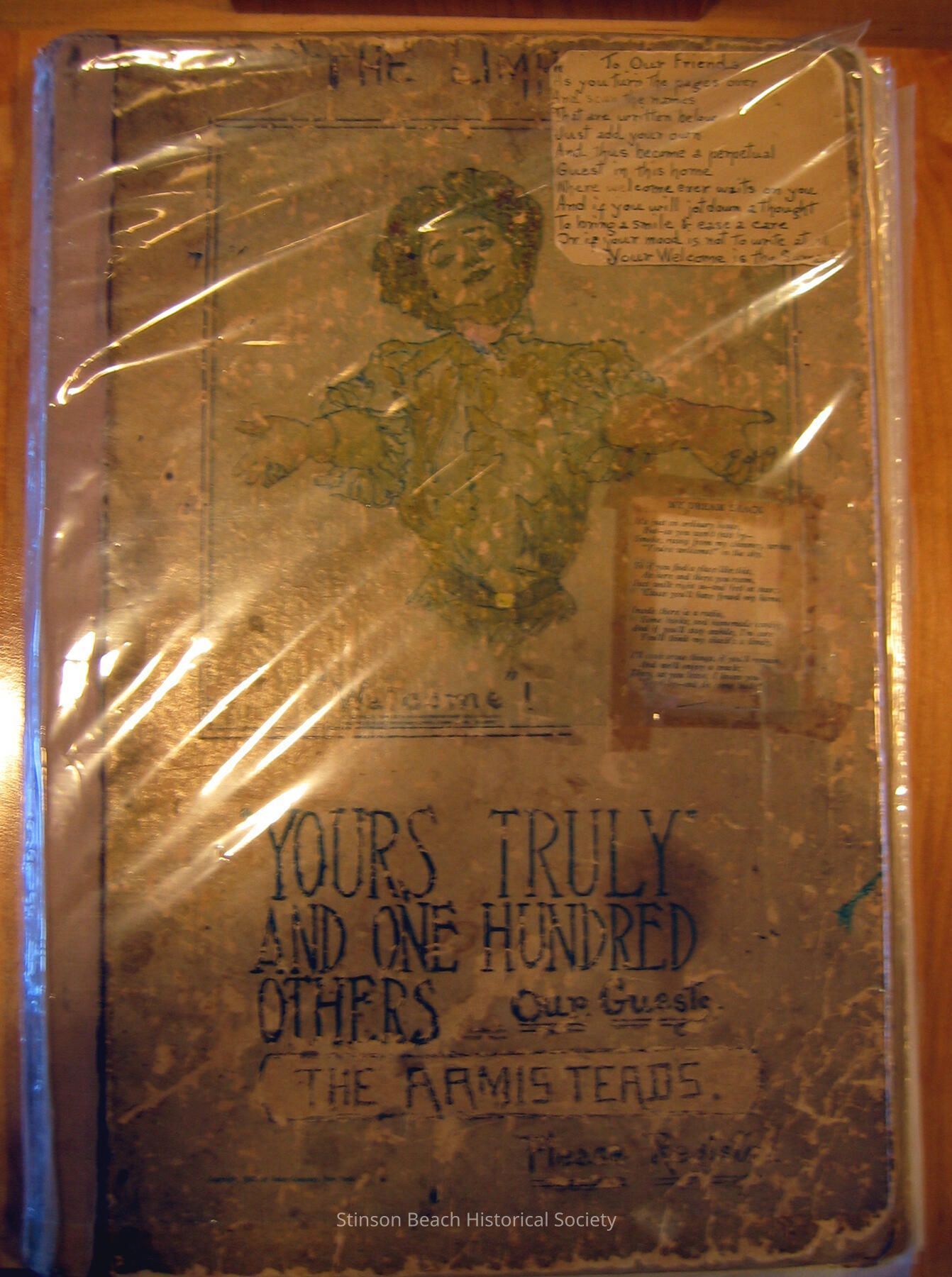 The guest book of the Armisteads cottage on 160 Buena Vista Ave. Stinson Beach. The 2 bedroom, 2 bath , 1182 s.f. cottage was built on a 3500 s.f. lot purchased by the family. The cottage was named "Limpet". The earliest notation is Nov.17, 1919 indicating the person moved into the Limpet from Dipsea Lodge on that day. Many people stayed in the Limpet, indicating it was used as a rental cottage over the years. The last entry is on 1950. All or the most of the guests are very literally people who left poems inspired by the location and the time like Pearl Harbor Day.Collection