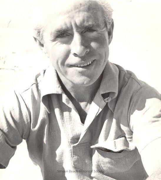 This black and white photograph is a portrait of a man (Duke Griffin) from the chest up. He is wearing a light colored, heavy weave short sleeved shirt and is smiling at the camera. He has white hair and the top of his head is cut off in the picture.Collection