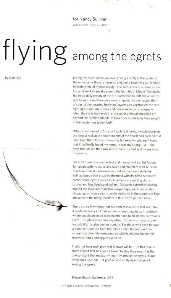 A flyer made in occasion of the memorial and celebration of the life of Nancy Sullivan. The poem written in 1987 by Gino Sky was reprinted for this occasion.Collection