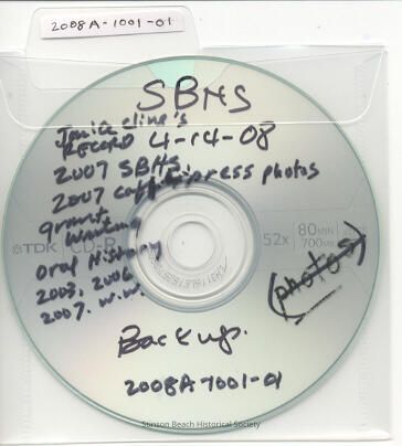 Collections of records from the computer desktop of Janice Cline, the president of SBHS. 2007 SBHS, 2007 Caffexpress photos, Grant writing, Oral History; 2003, 2006 and 2007 Willow Whistle in PageMaker 6.Collection