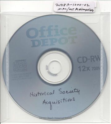 Copy of the record from Jane Slack, the first SBHS president's computer. Mac compatible. It contains the folders of SBHS Acquisition Policy, Acquisition by Year, Donor mailing Lists, Accession Process, Annual Report, Accession and Collection, Archival Job and Budget, Nonprofit #, Sales, Letter Heads, Oral History, Forms, Collection Master Index, History collection and research done.Collection