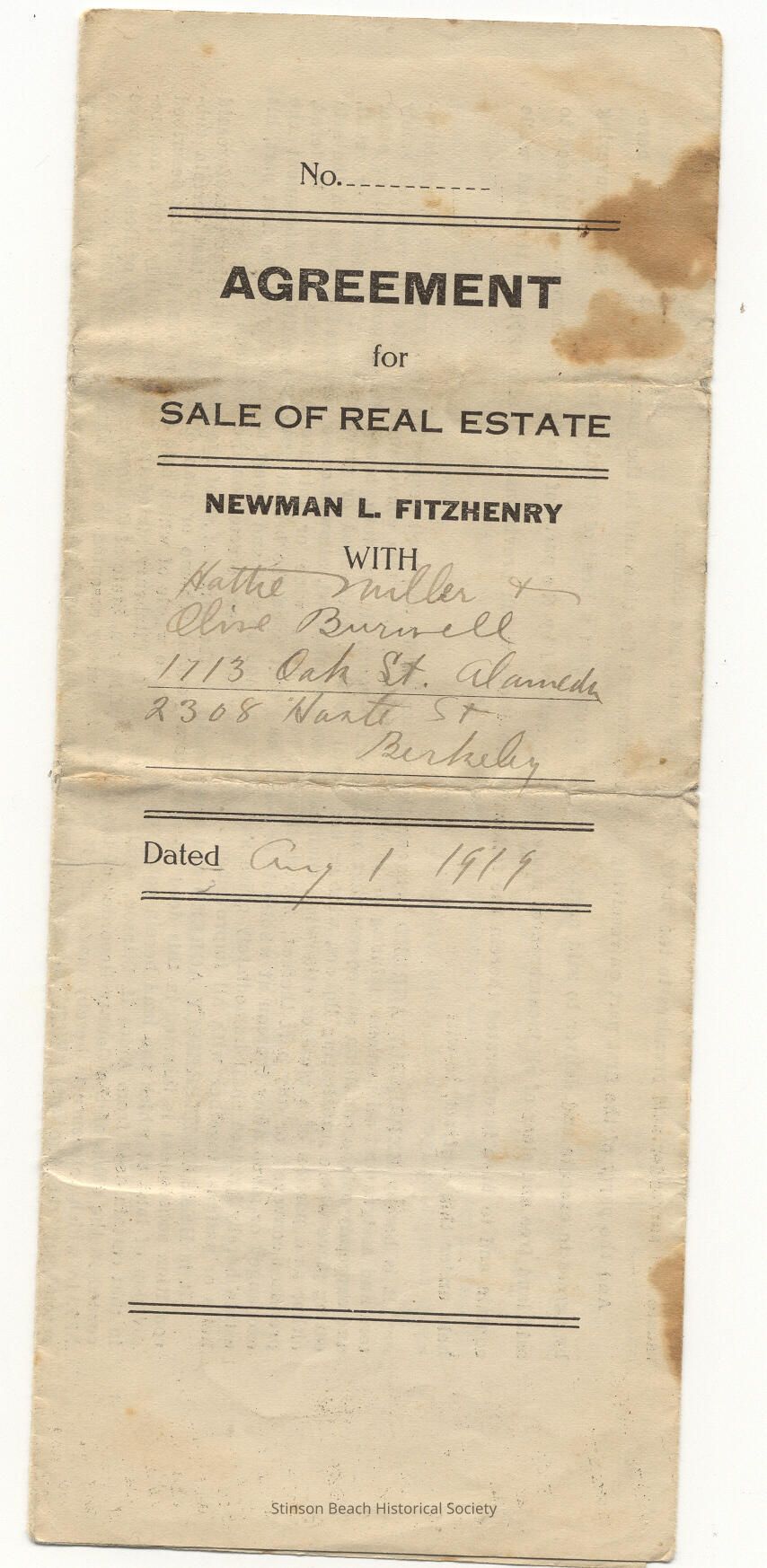 Agreement for sale of real estate from Newman L. Fitzhenry to Hattie Miller and Olive Burwell. Property: Lot No. 5, Block No. 1Collection