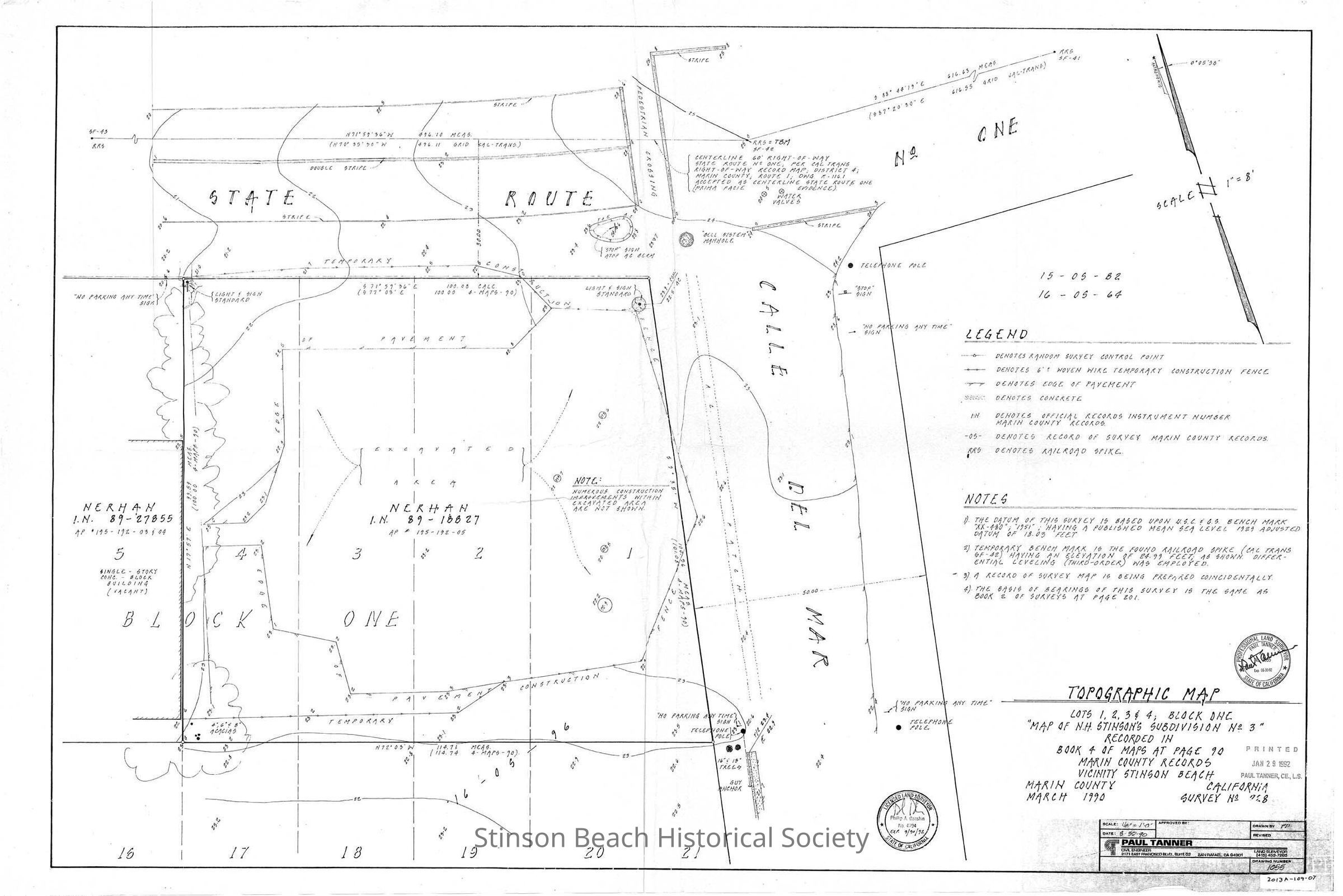 Topographic Map of Chevron Station shows Lots 1, 2, 3 & 4 in Block One, Subdivision No. 3 as recorded in Book 4 of Maps at Page 90 Marin County Records.Collection