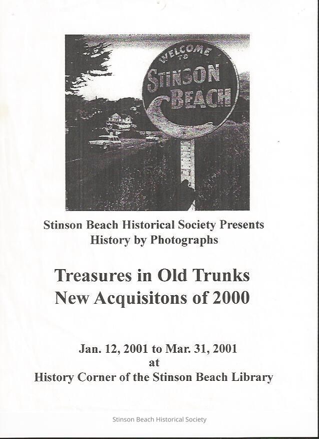 Flyer advertising the Historical Society's photography show at the Library entitled "Treasures in Old Trunks - New Acquisitions of 2000." The show ran from January 12 - March 31, 2001.Collection