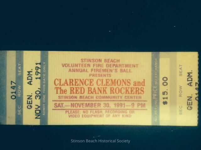 13 Photos of musicians with friends and on record jackets, plus posters of and tickets from their gigs in Stinson Beach, as collected over the years by Toby Bisson and used by SBHS in their Making Waves fundraising event in September 2015.Collection