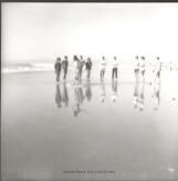 This black and white photograph is similar to that of #1994-182-01except there are only ten children strung out watching the skid boarder who is on the board and sliding.Collection