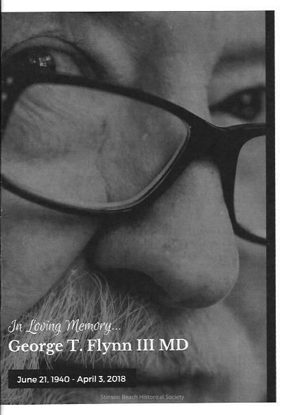 A program booklet of George Flynn's Memorial Service at the Stinson Beach Community Center on May 6, 2018. "In Loving Memory..." includes An Irish Prayer, George's favorite recipes, an excerpt from "The Spell of the Yukon" by Robert Service, an a photo montage.Collection