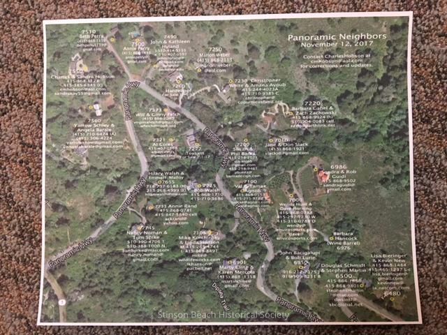 Color Google map showing residences along Panoramic Highway with written identifications of property owners names, phone numbers and email addresses. Produced by Charles Hobson while he was a member of the Disaster Council.Collection