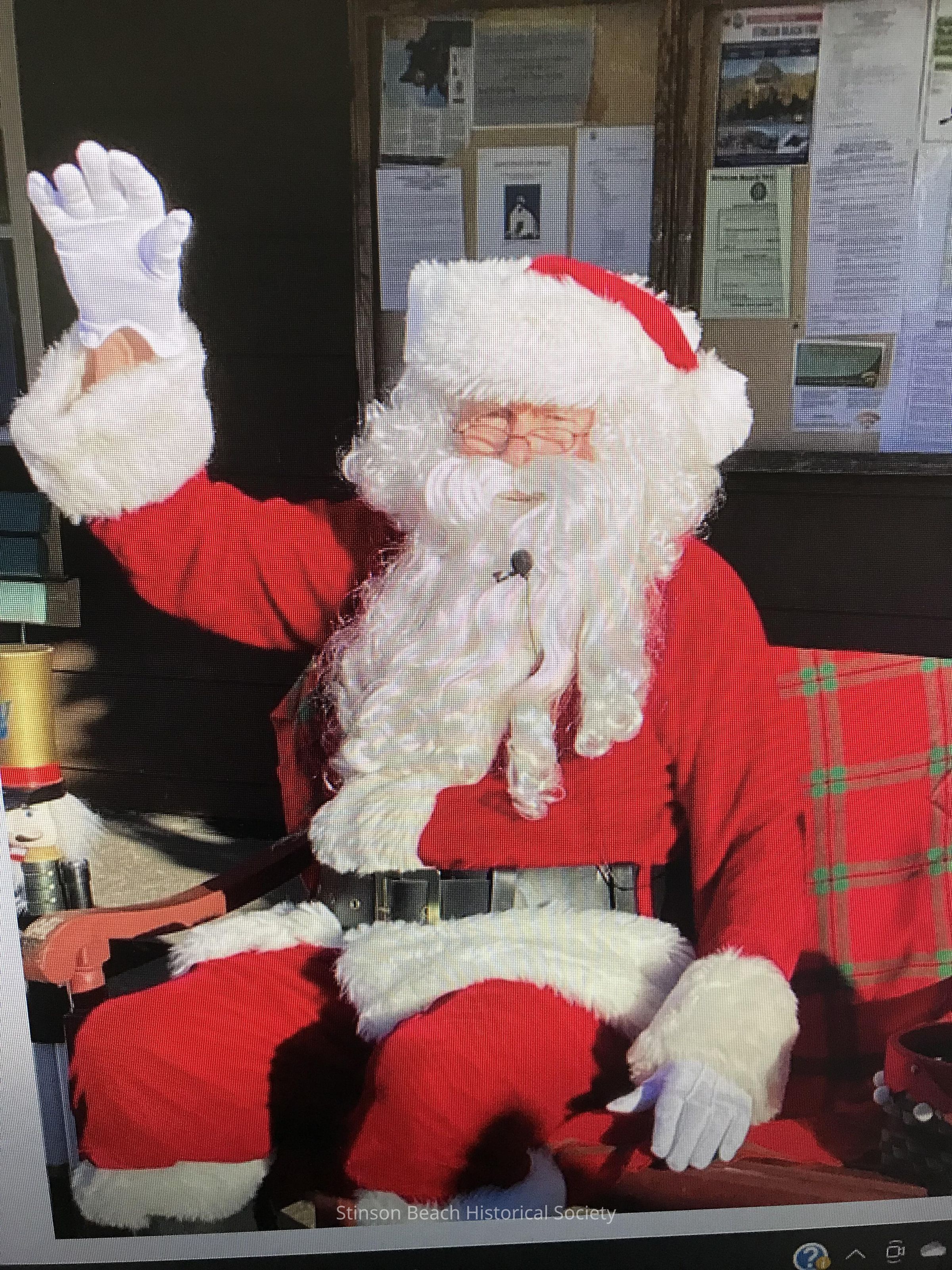 Santa welcoming the children in front of the Community Center. Morey Nelson graciously took over being Santa after Charlie Lenhoff died thus keeping the decades old tradition alive.Collection