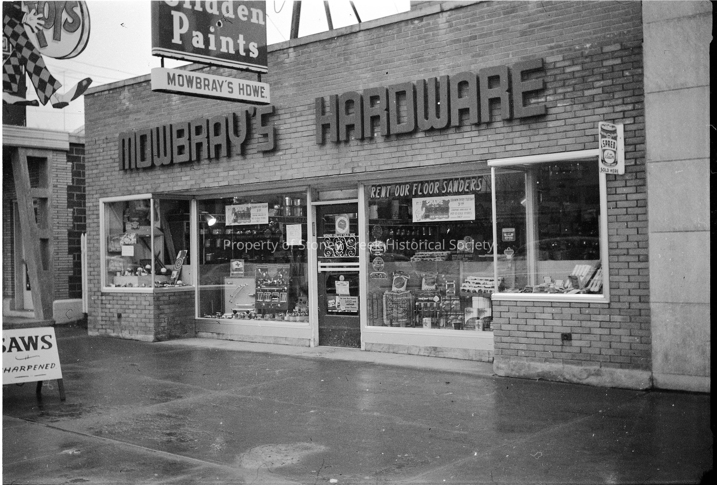 Exterior of Mowbray's Hardware.40 King St E. 1956