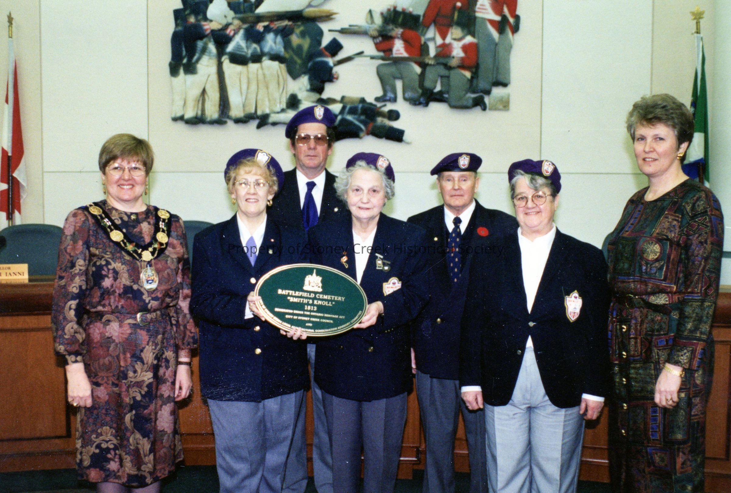 Presentation of L.A.C.A.C Plaque designating Smith's Knoll as Battlefield Cemetery at Stoney Creek Municipal Centre at City Council Chambers.