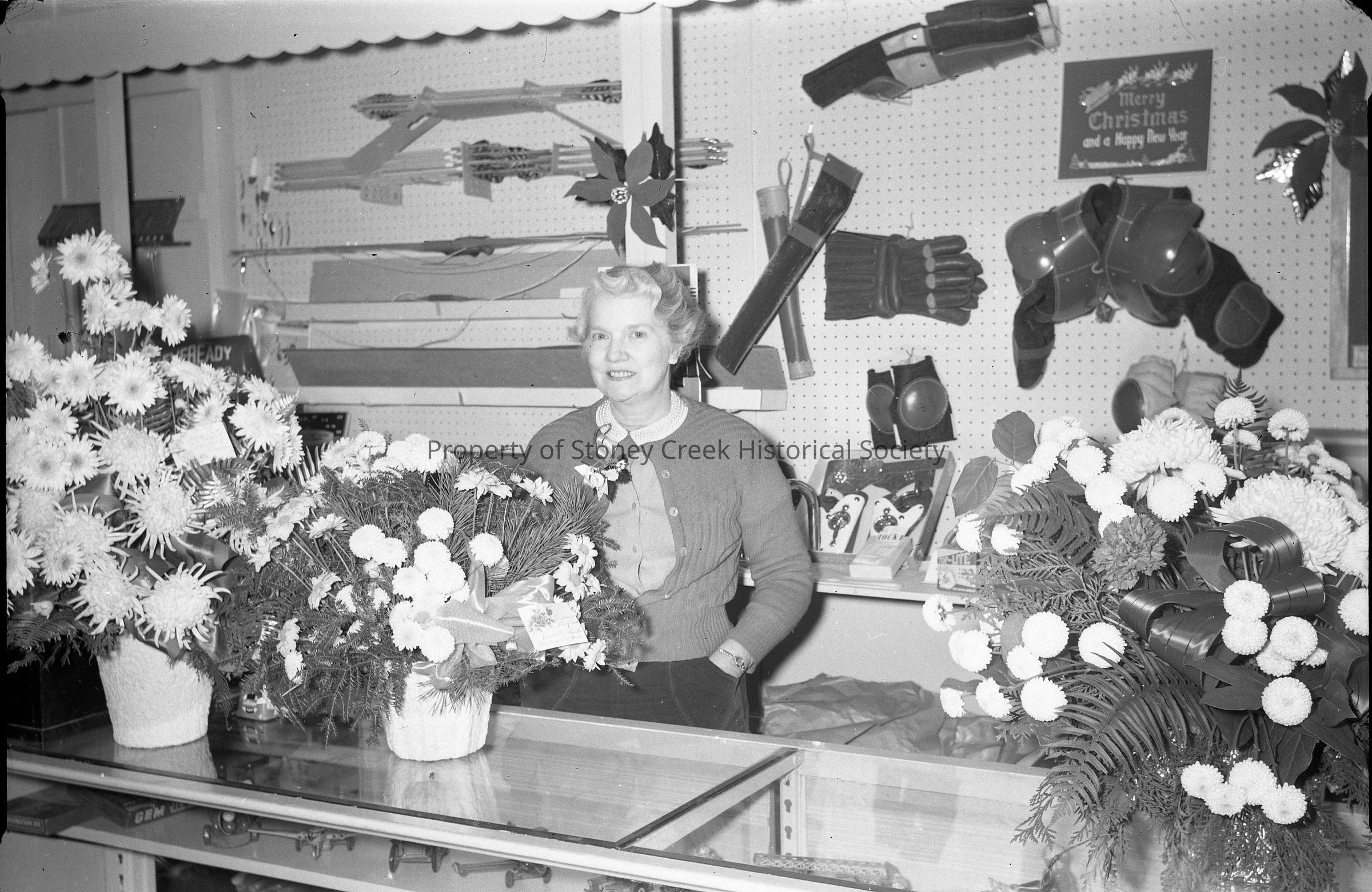 Mrs Burns. Opening of Stoney Creek Cycle at 20 King Street E. In the former Clayton's Men's Wear Store.