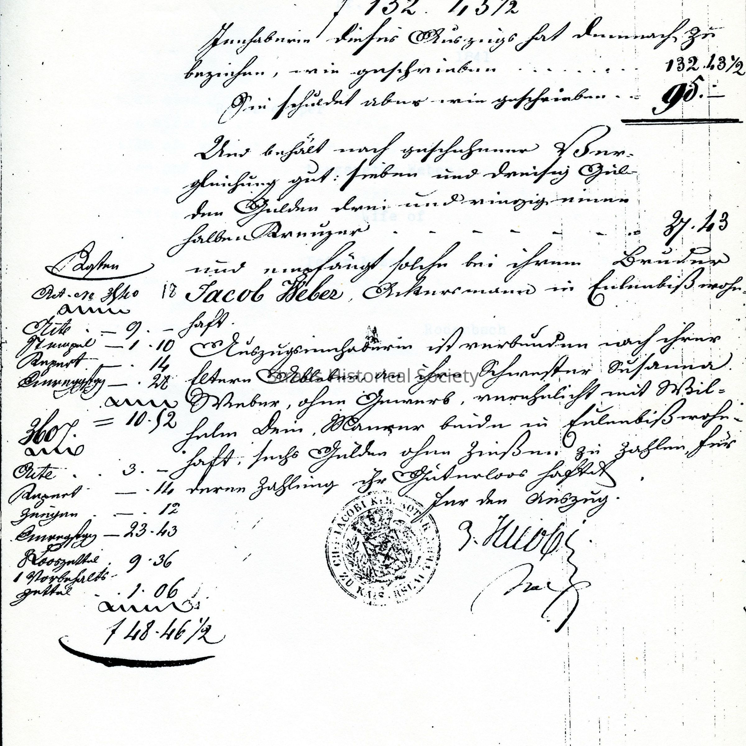 Business Paper: Releasepaper, Margaretha Weber, wife of Peter Messing of Rodenbach, Extract of inheritance given to their children No. 3840 & 3607, No. 124. 20 December 1841. In Old German. Five handwritten pages. Translated by Gertrud Miller.Entry/Object ID