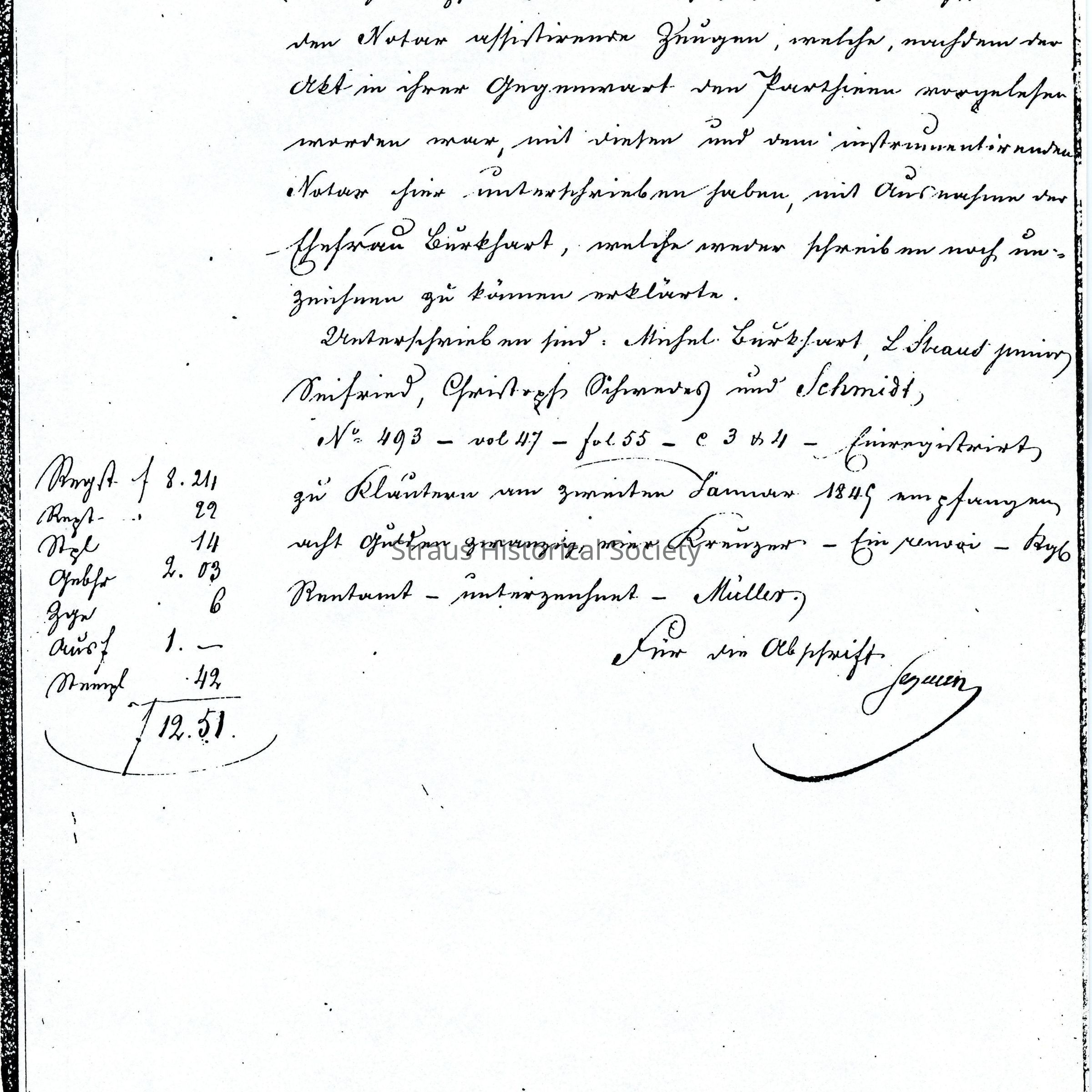 Business Paper: Vor Friedrich Ludwig Schmidt, mentions Johanette GRUENEBAUM, Isaac Straus and L. Straus junior. Cover page contains the name of Isaac Straus of Otterberg. No. 506. 27 December 1844. In Old German. Not translated. Seven handwritten pgsEntry/Object ID
