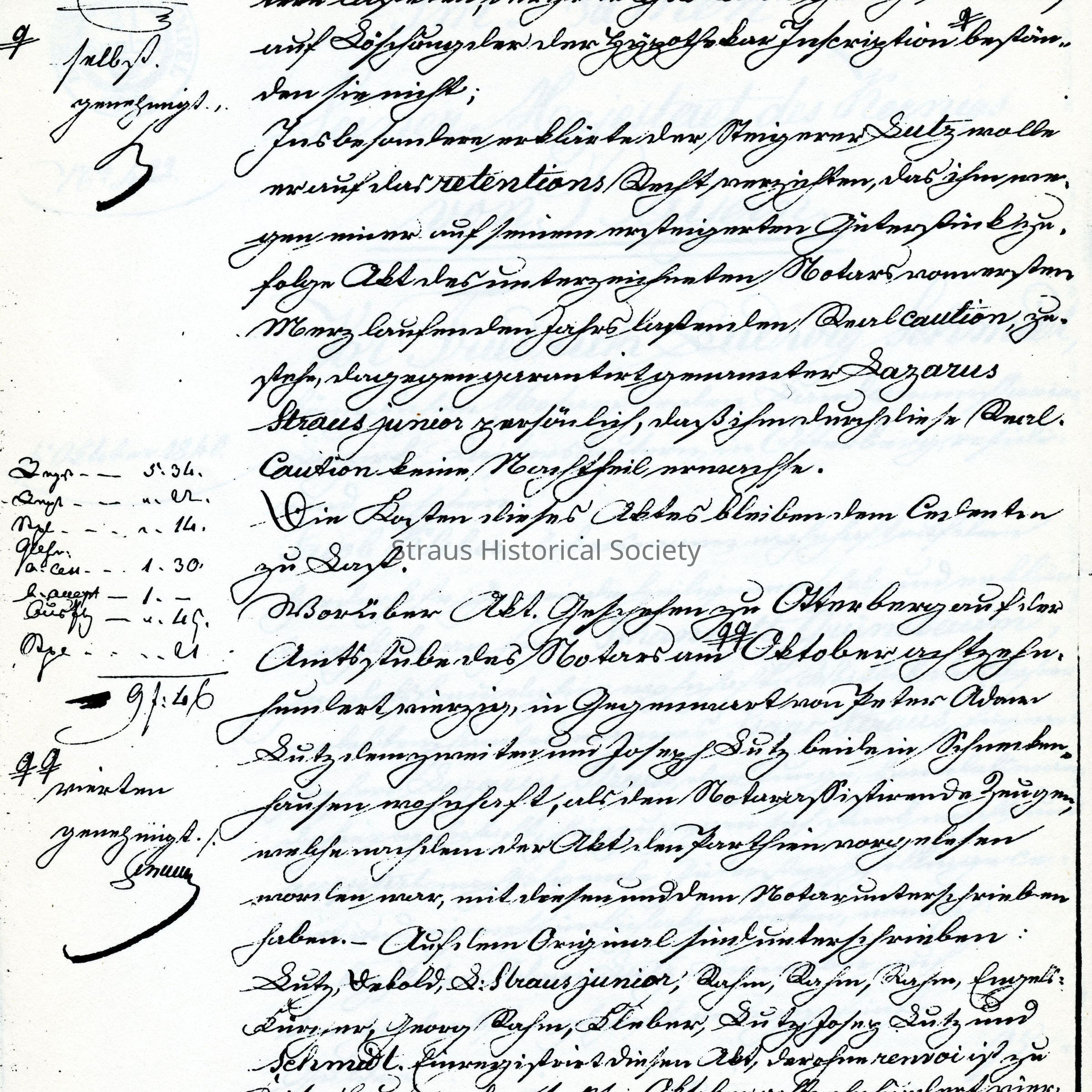 Business Paper: Im Namen Seiner Majestaet des Koenigs von Bayern, mentions Lazarus Straus junior No. 482. 4 October 1840. In Old German. Not translated. Four handwritten pages.