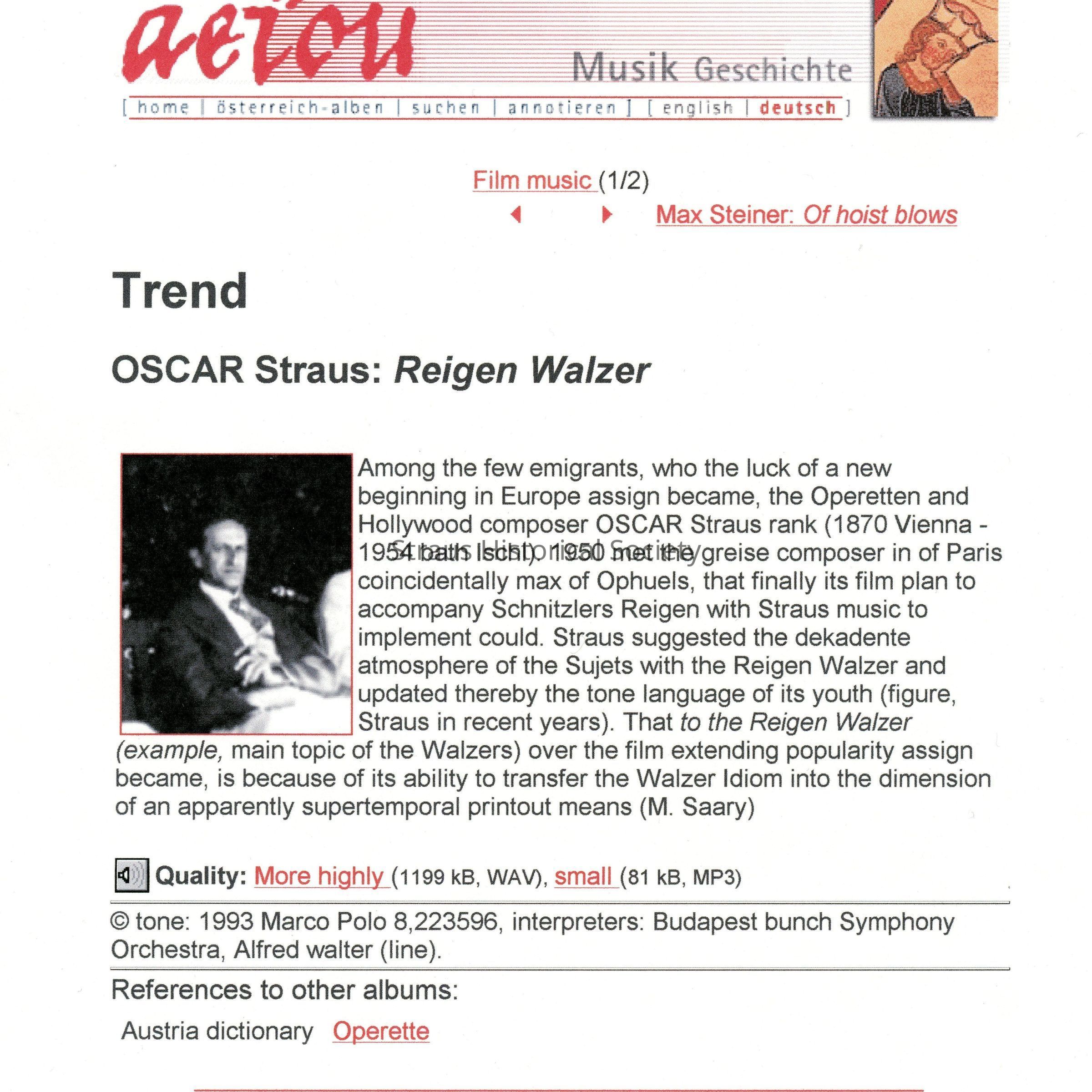 Internet Article: "Trend: Oscar Straus: Reigen Walzer."