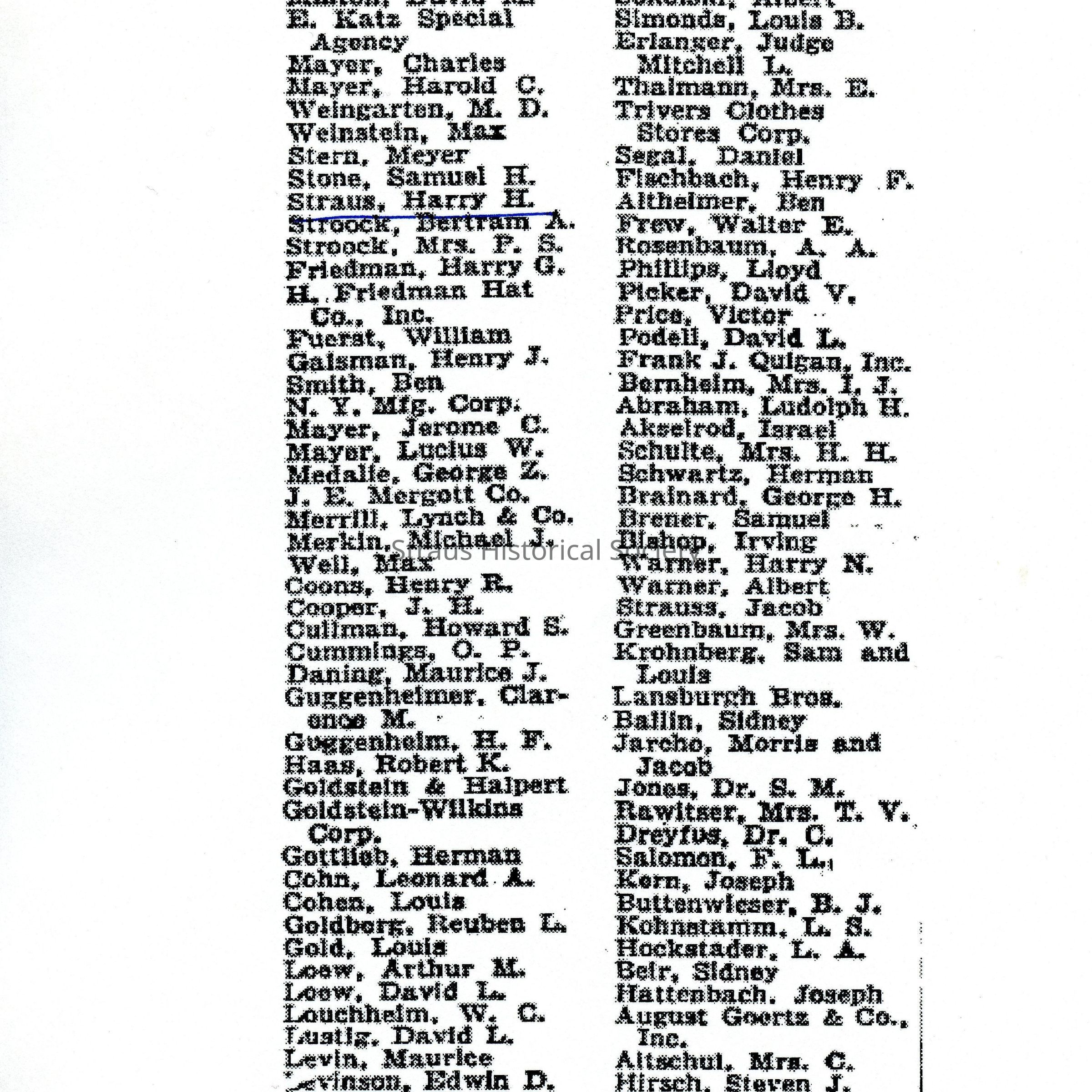 This article lists the names of individuals who donated money to local Jewish charities. Included in this list is Harry H. Straus.