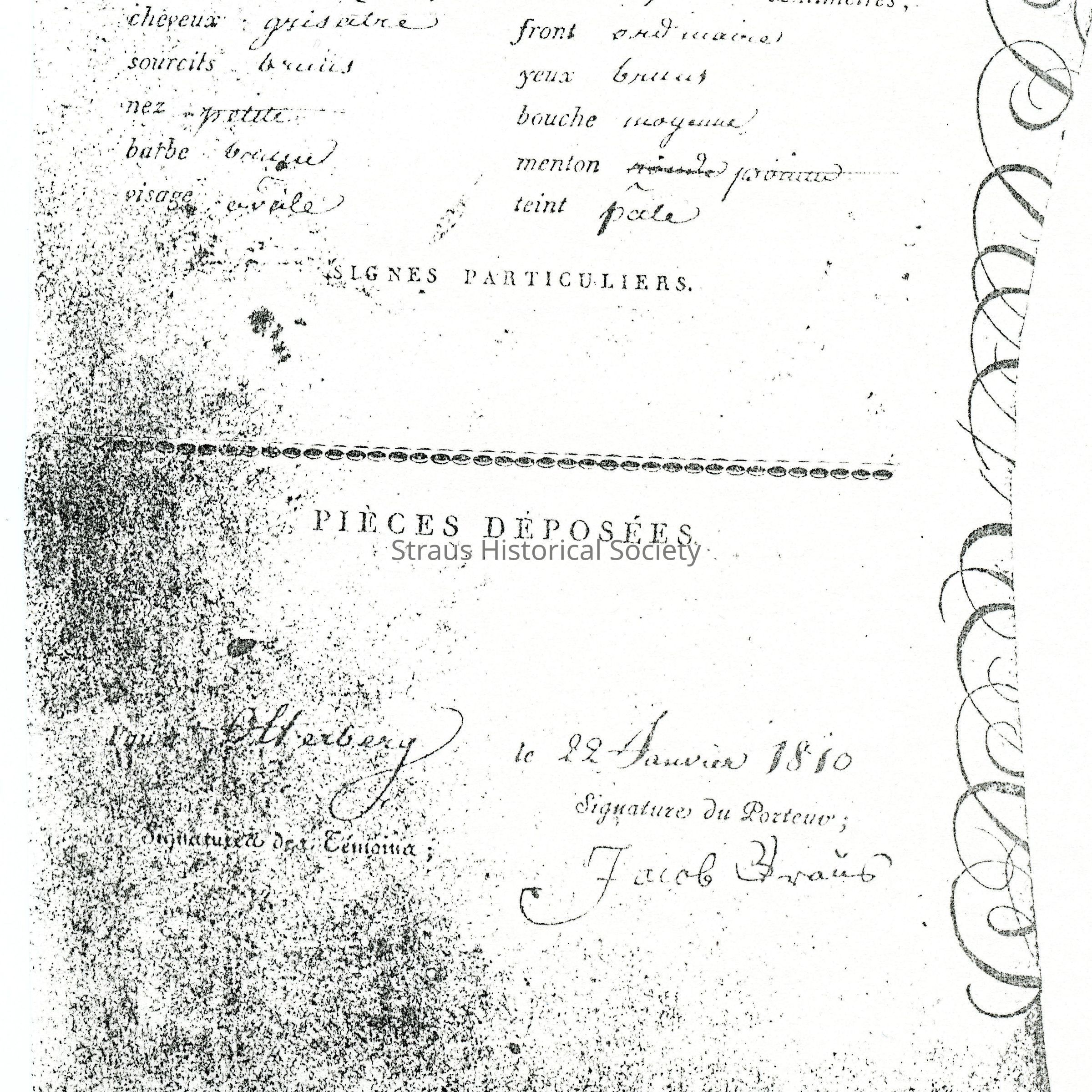 Passport for Issac Straus, Merhcant. Issued from Otterberg, Jan. 22, 1810.