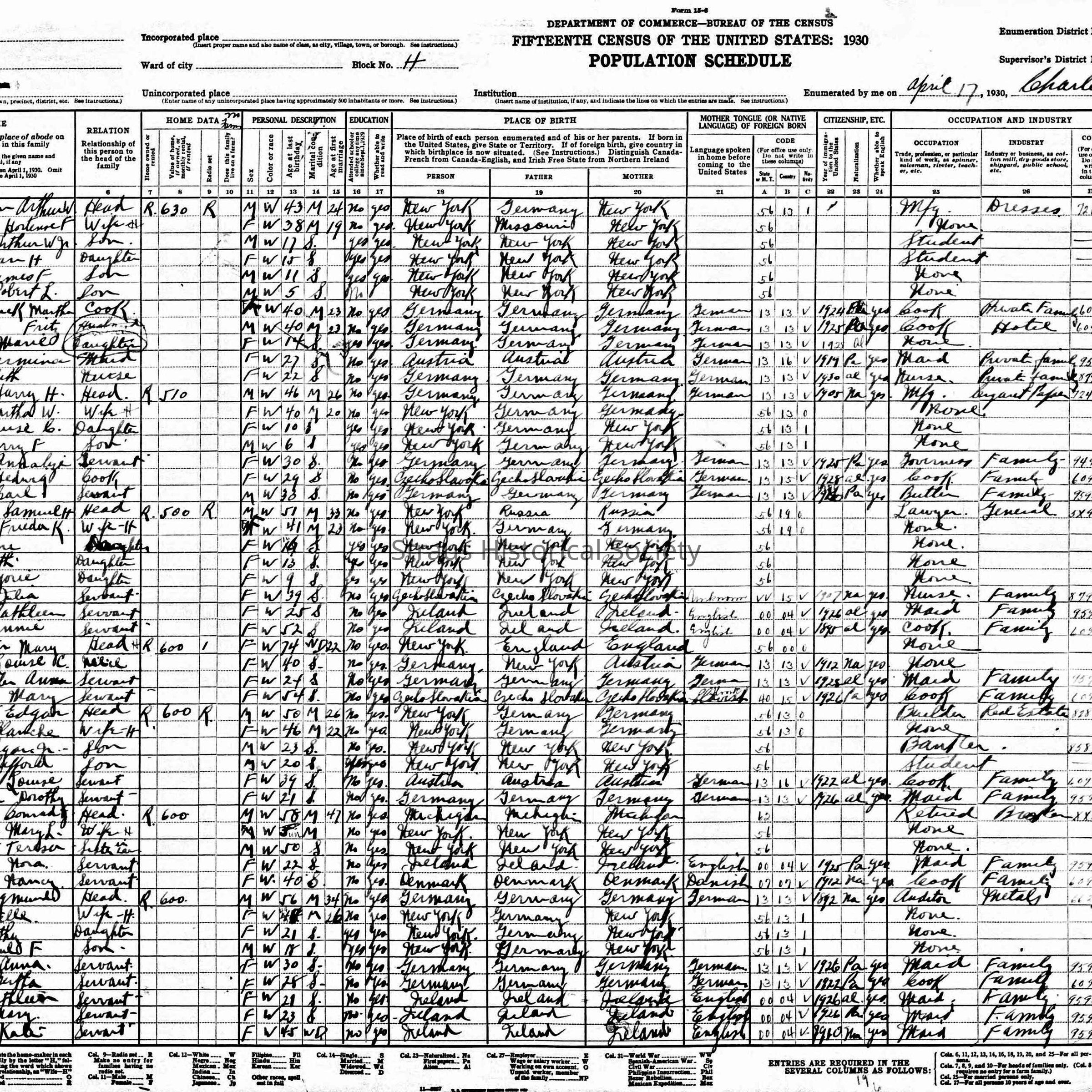 1930 US Census: New York, NY - Harry H. Straus and family at 135 Central Park West. One oversized page.