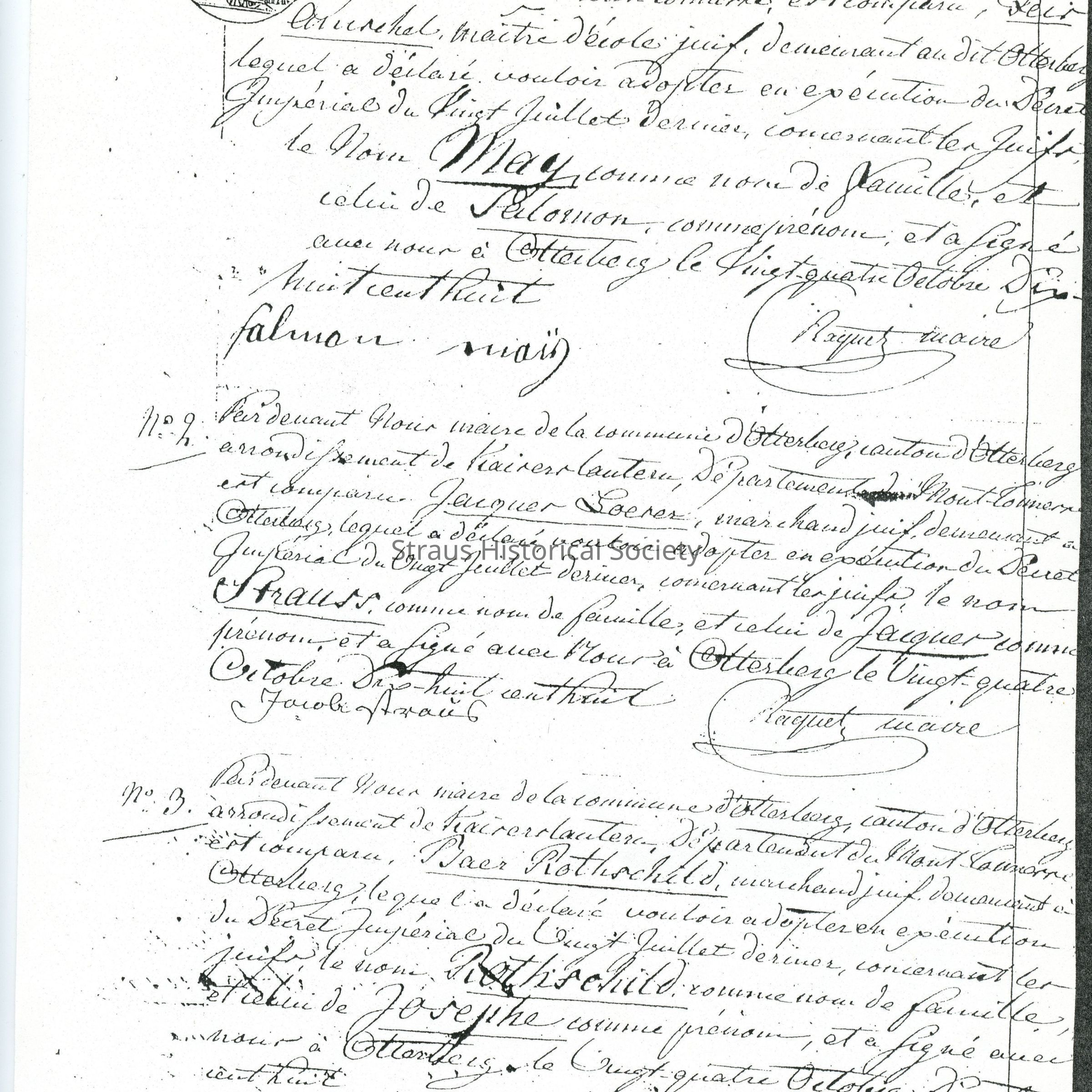 Certificate verifying name change. Jacob Loesser changes his name to Jaques Strauss.