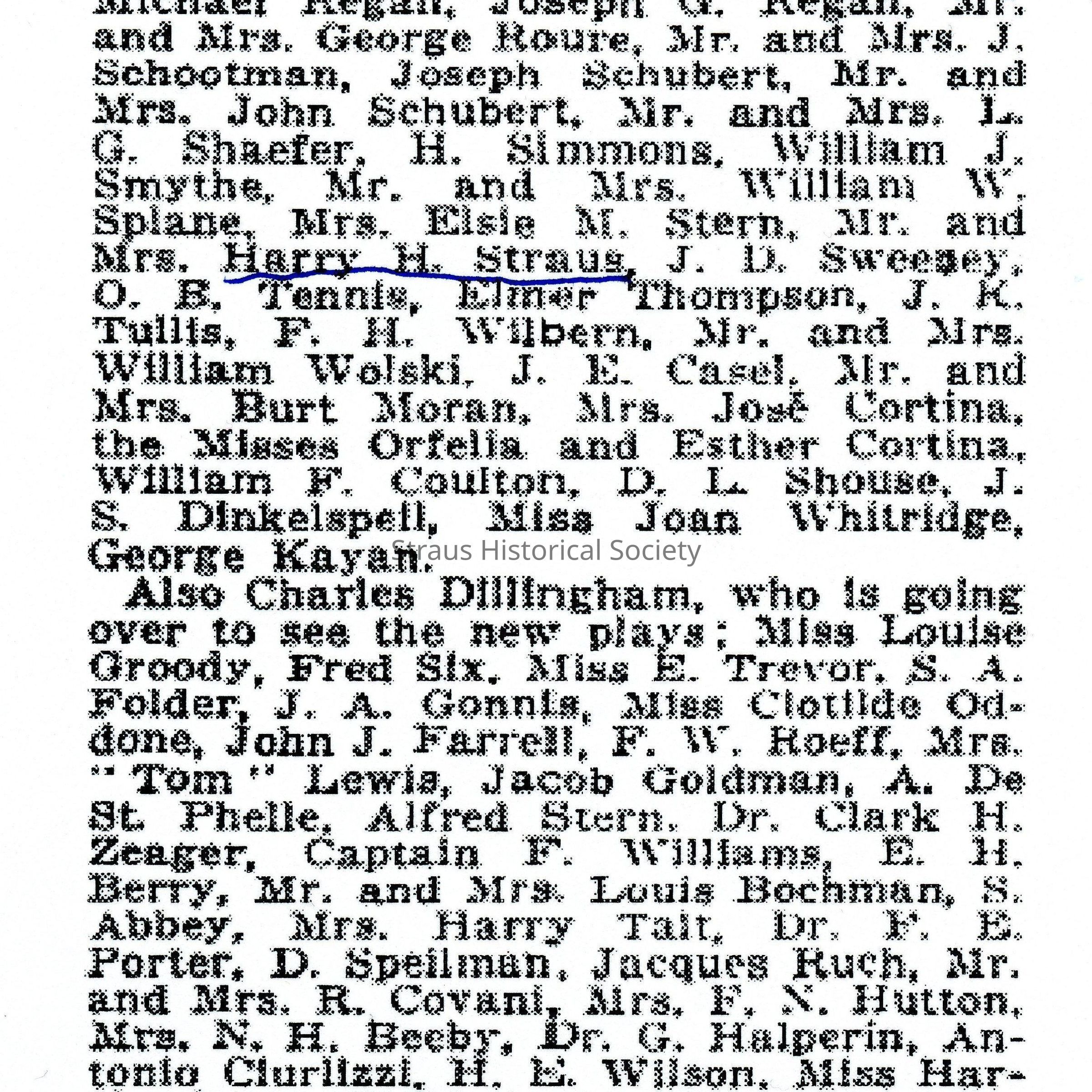 Harry H. Straus is mentioned in this article, as one of the passengers sailing to Europe.