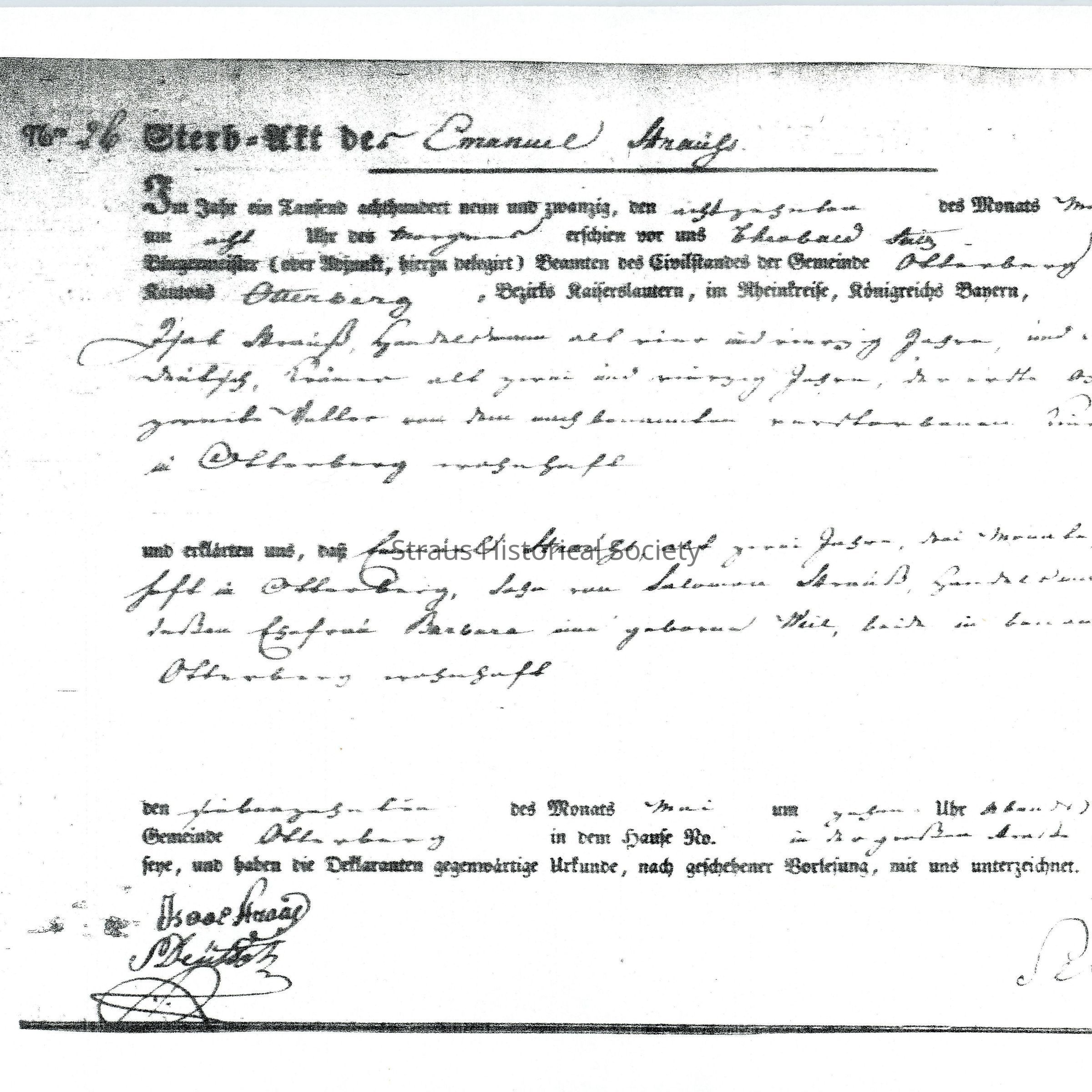 Death Record: Emanuel Straus, son of Seligman (Salomon) Straus and Elisabetha (Barbara Weil). 18 May 1829.