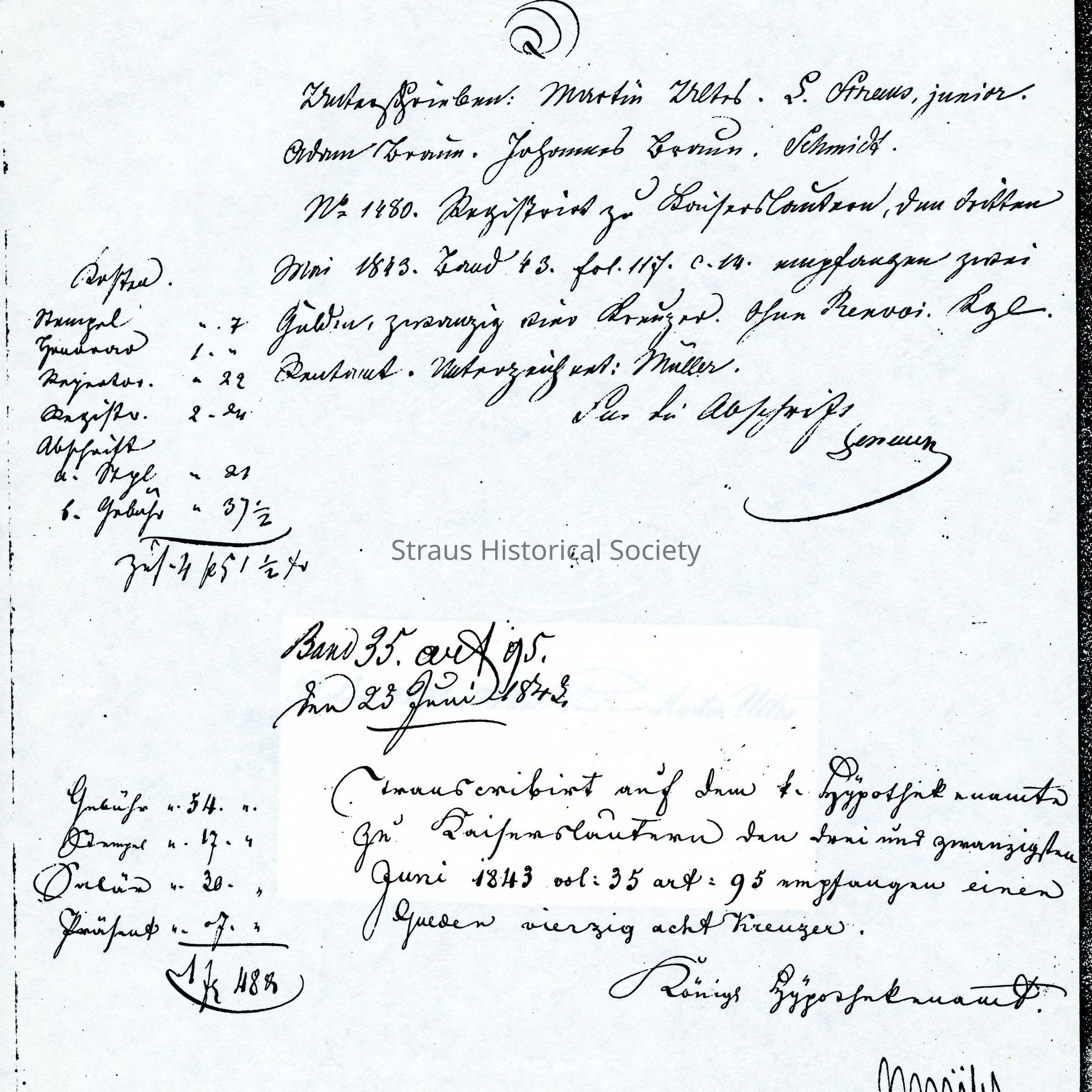 Business Paper: Vor Friedrich Ludwig Schmidt, mentions Johanette GRUENEBAUM. Cover page contains the names of Johanette (?) GRUENEBAUM, Otterberg and Isaac Straus No. 270. 27 April 1843. In Old German. Not translated. Four handwritten pages.Entry/Object ID