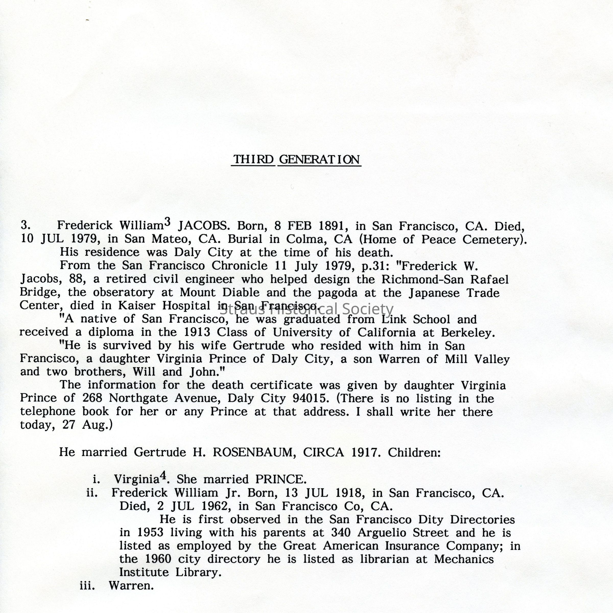 Research Materials: Straus Genealogy Draft. 26 August 1991. Six typewritten pages.Entry/Object ID