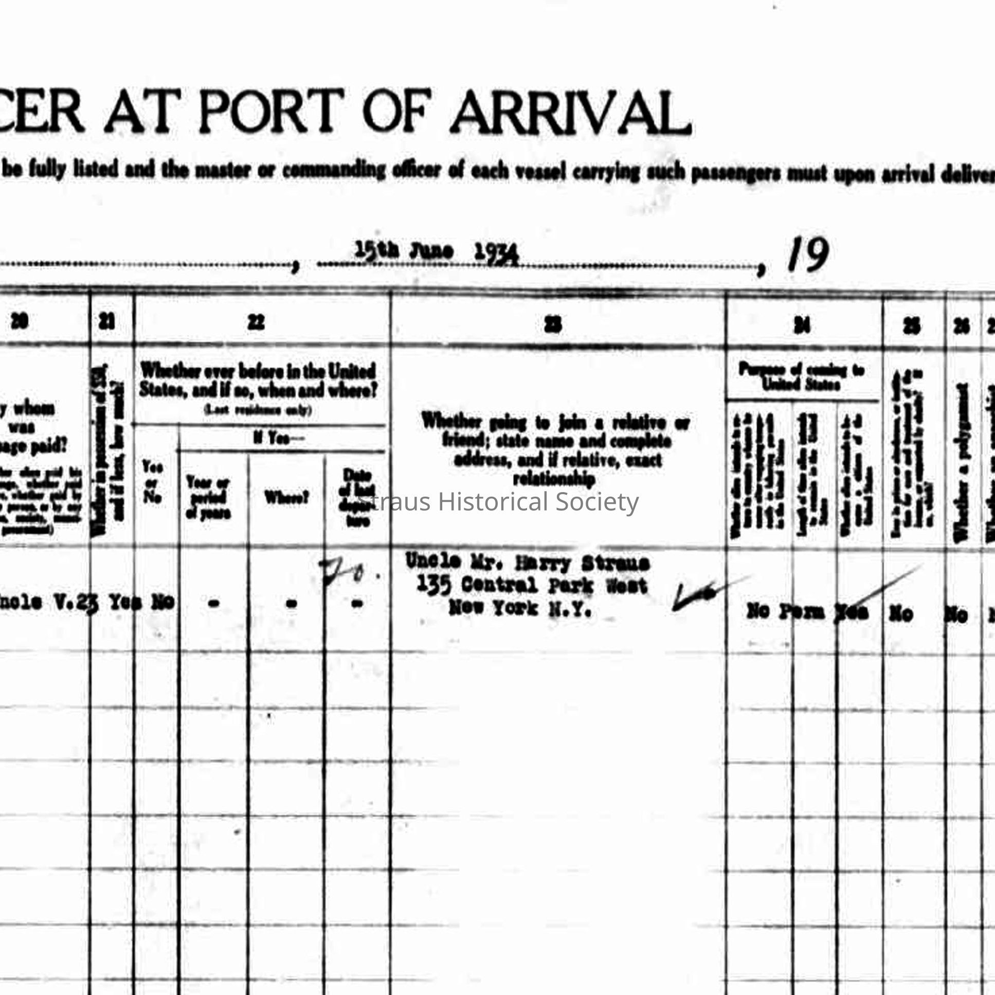 Passenger Manifest: Baldauf, Annemarie, age 14, reads and writes German and English, born Munich, Line 1. Sailed 9 June 1934 on the S.S. Berengaria from Cherbourg to New York arriving on 15 June 1934.